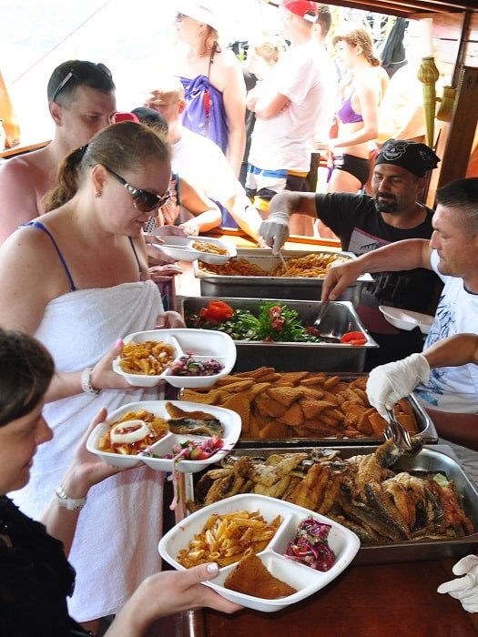 In 2024, Antalya pirate boat trip price is €25 with lunch and €40 with lunch & soft drinks. Children between ages of 6 and 11 are discounted and children under six are free.