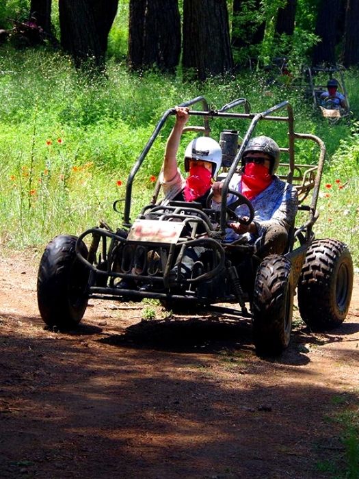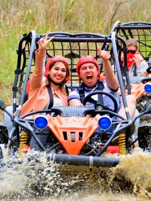 Want to go to Antalya buggy safari, but a little unsure? Buggies are safe and highly manoeuvrable vehicles. Stable, with a protective metal frame and seat belts. You can even take your children with you. Because the Buggy is like a car, it’s easy to learn to drive it.