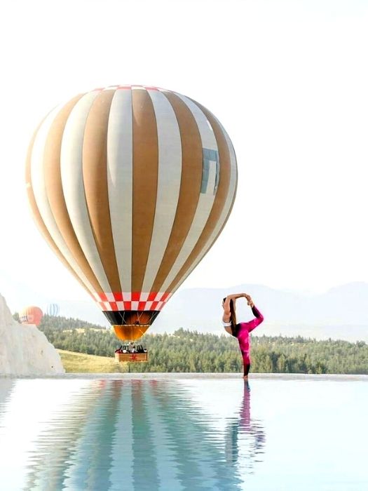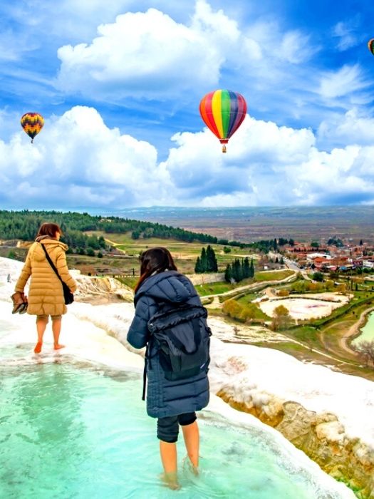 • See the famous white travertines from the balloon.