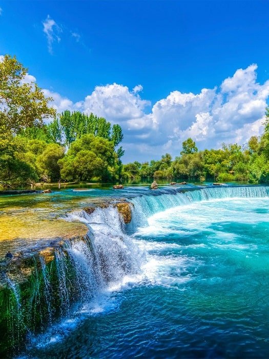 The waterfalls of Manavgat are not particularly high but spread along the wide river, cascading into the depths at a high speed. Here you will have stunning views of the falls as they turn from dark blue to the white foamy waters below.