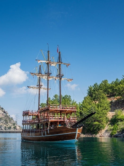 Side Green Canyon boat trip is a unique tour for those who like Turkey to be varied, for those who want to be admired and amazed. We will see a completely different landscape, steep cliffs with an emerald river flowing between them. We head to the full-flowing Manavgat, which runs through the town bearing the same name. The river takes its source in the mountains and that is where we are going.